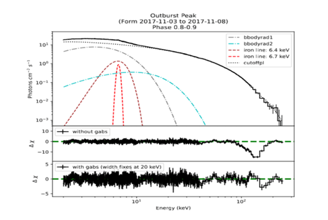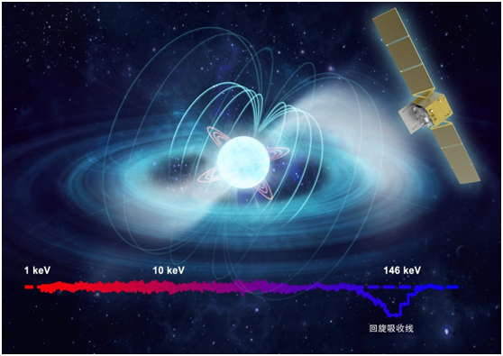 慧眼卫星在146 keV附近观测到银河系内第一个超亮X射线源Swift J0243.6+6124的基频电子回旋吸收线(图片取自该成果的论文)