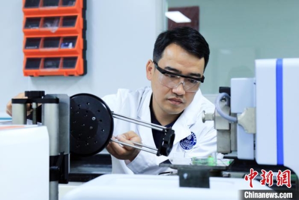 中科院大连化物所范峰滔研究员在调试表面光电压成像仪器。中科院大连化物所供图