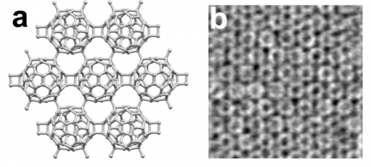 “碳材料的性能与其拓扑结构密切相关。此项研究最大的突破在于,以碳簇代替碳原子构筑碳材料。”郑健介绍,此前构筑二维材料的最小单元是单个原子,而碳簇由多个碳原子构成,例如碳60是由60个碳原子构成的球状结构。团队认为,以碳簇构建二维材料有望获得更加新奇的性能。