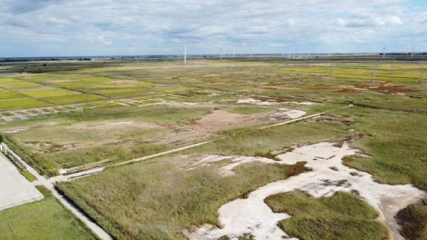 吉林白城,种上AT1/GS3改良过水稻的实验田(航拍图)。(中科院遗传发育所供图)