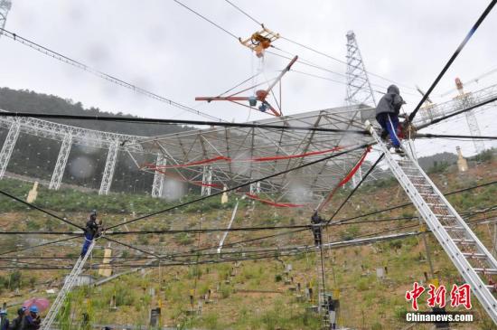资料图 FAST工程是“十一五”国家重大科技基础设施建设项目,项目选择放在贵州平塘,是该地天然喀斯特洼地成为了项目最好的台址。中新社发 刘朝荣 摄