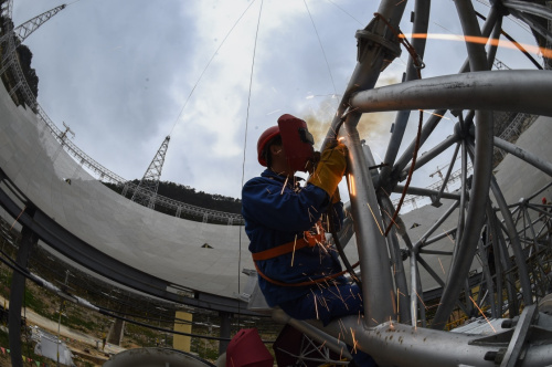 【新华网】天眼现雏形:世界最大单口径射电望远镜反射面板铺设近八成