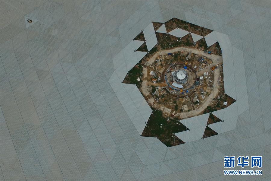 4月10日拍摄的正在建设中的500米口径球面射电望远镜(FAST)工程。