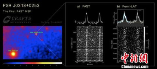 据介绍,从射电波段对Fermi-LAT未认证点源进行高灵敏度后随观测,确认高能源属性,是发现新脉冲星的有效途径之一。FAST此次新发现的脉冲星“J0318+0253”自转周期5.19毫秒,根据色散估算距离地球约4000光年,由FAST使用超宽带接收机进行一小时跟踪观测发现,是至今发现的射电流量最弱的高能毫秒脉冲星之一。