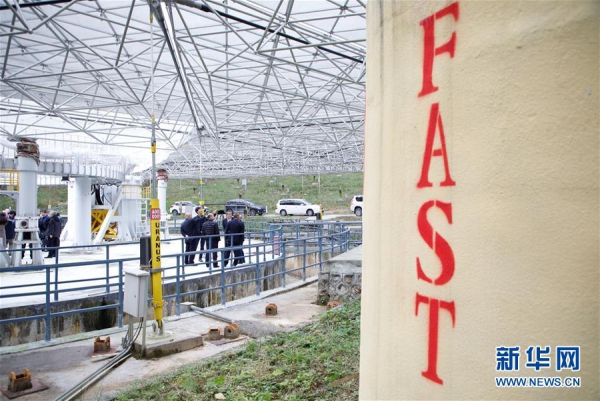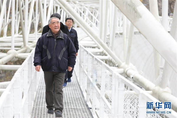 1月11日,专家学者对“中国天眼”进行考察(检修期间拍摄)。新华社记者 刘续 摄