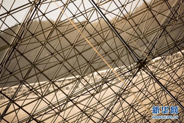 1月9日拍摄的“中国天眼”反射面板(检修期间拍摄)。新华社记者 刘续 摄