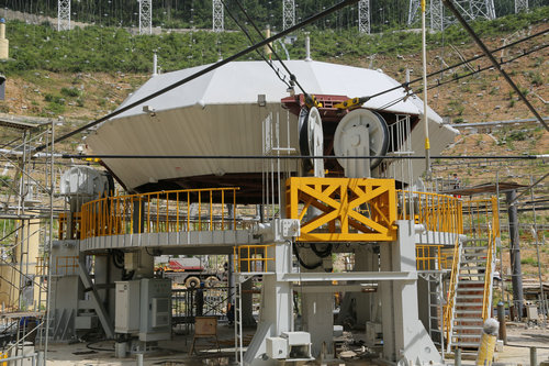 FAST舱停靠平台是FAST望远镜馈源支撑系统的6个子系统之一。舱停靠平台坐落在大窝凼洼地底部中心位置,用于实现馈源舱建造组装、维护、检测和驱动索系安装、更换功能,以及馈源舱入港时的精确交汇对接功能,它是一个光、机、电一体化的工艺设备。