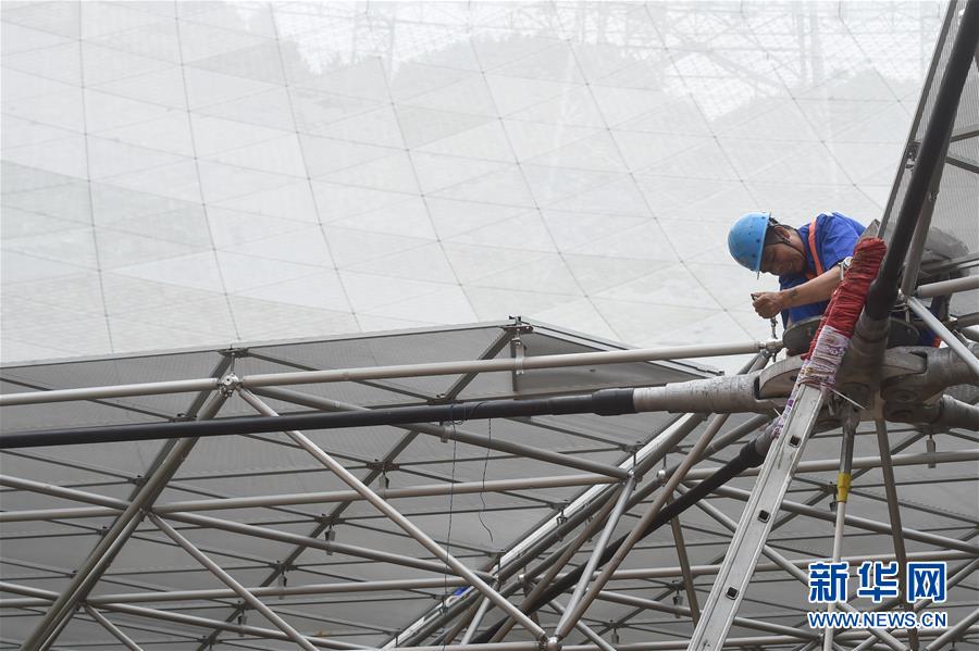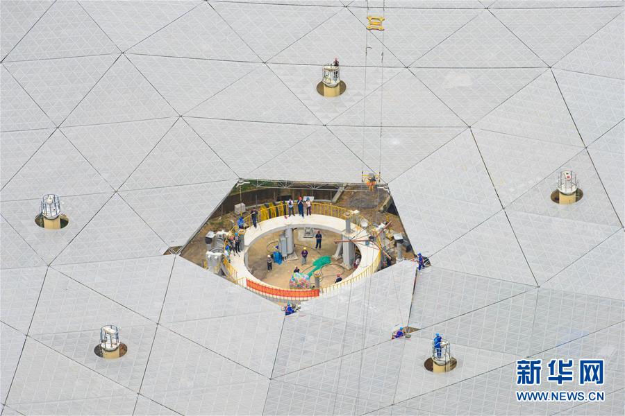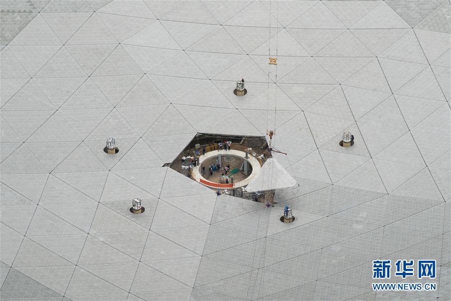 7月3日,工作人员在安装FAST最后一块反射面板。新华社记者 欧东衢 摄