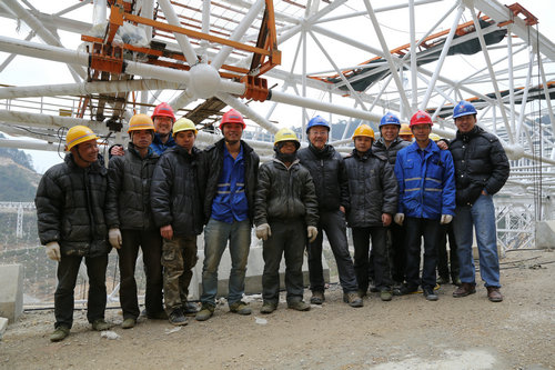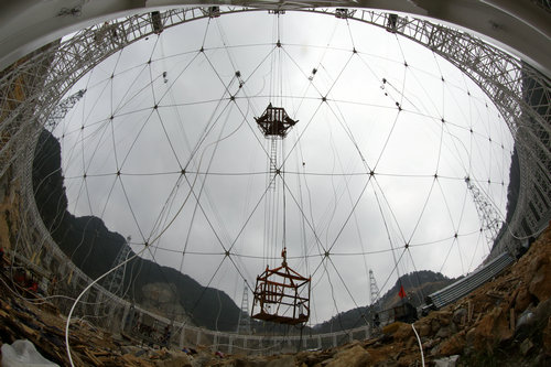 2015年2月4日上午11时45分,随着最后一根主索安装成功,标志着500米口径球面射电望远镜(FAST)索网制造和安装工程顺利完成,这是FAST工程的又一个里程碑。