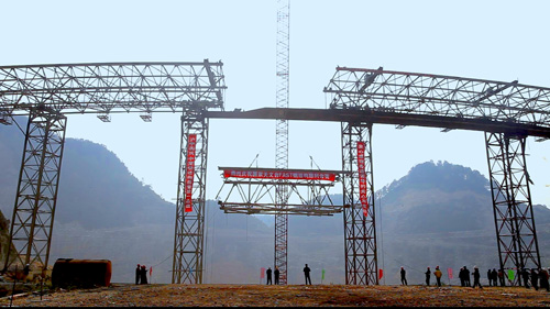 2013年12月31日,FAST工程大窝凼施工现场阳光明媚,下午13:36,随着国家天文台台长、FAST工程经理严俊的一声令下,圈梁合拢分块缓缓起吊,圈梁合拢分块对接过程顺利,整个过程历时30分钟。