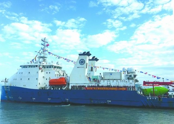 11月28日,搭载着“奋斗者”号的“探索一号”科考船载誉而归。陈欢欢摄