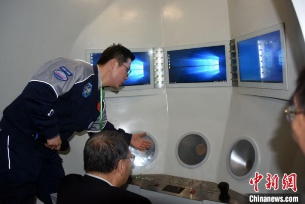 廖佳伟在“奋斗者”号高仿真模型舱内科普讲解。孙自法摄