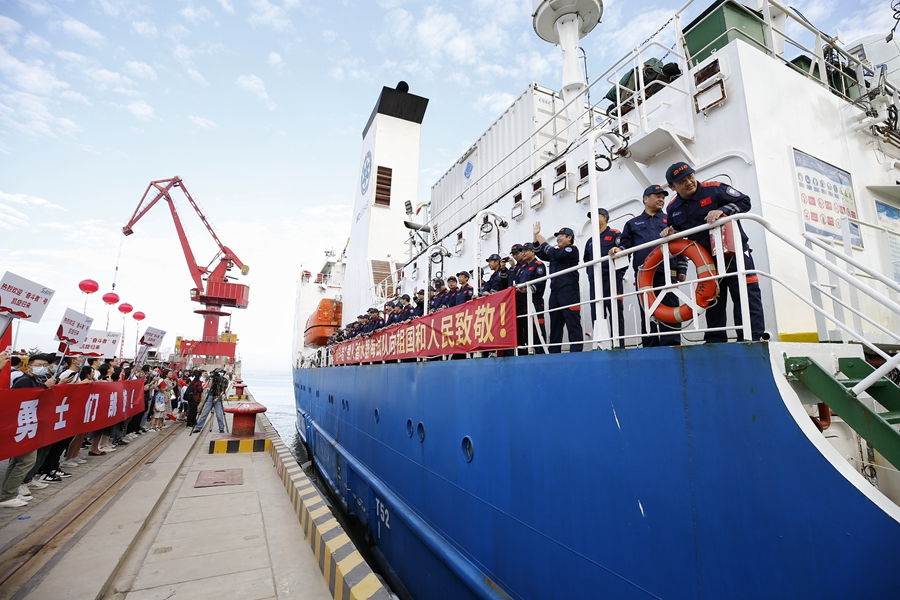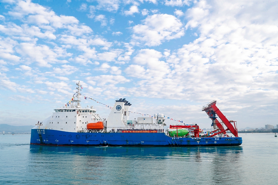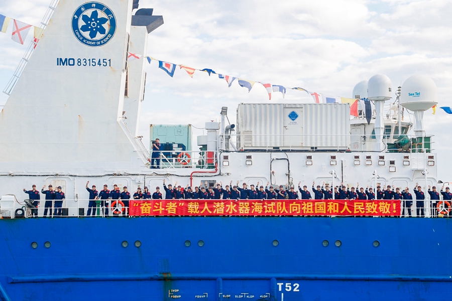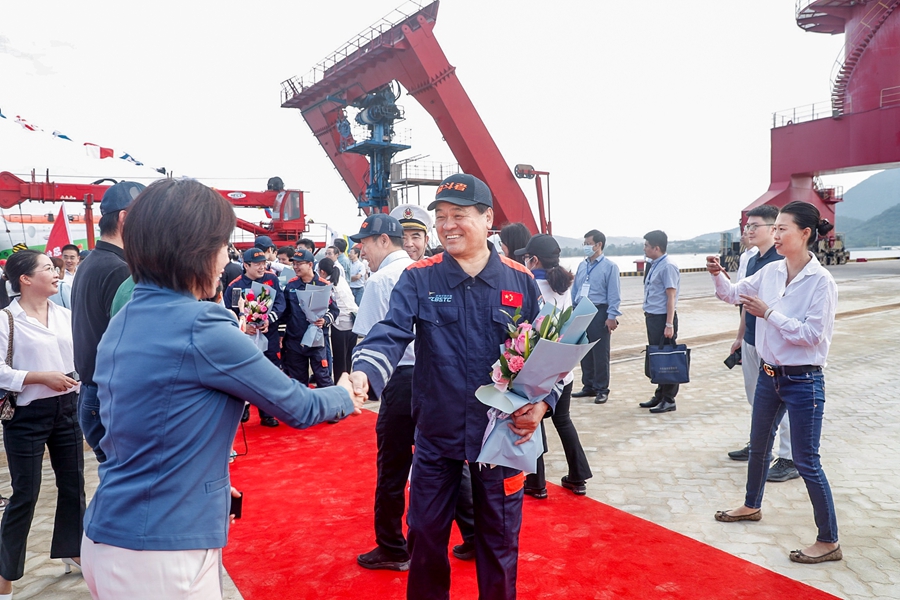 “奋斗者”返航接船现场