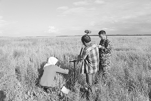 科研人员采集土壤样本
