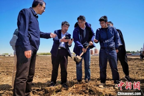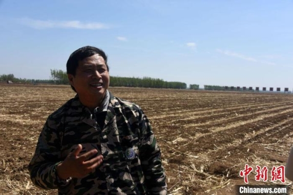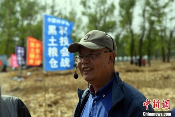 中科院东北地理所研究员关义新在“梨树模式”试验基地介绍情况。中新社记者 孙自法 摄