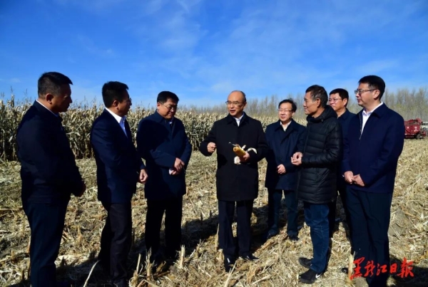 秋天的田野一派丰收景象。向阳乡日新村秋收现场机械轰鸣,许勤健步走在刚刚收获的地块上,手拿玉米棒与农技人员细算增产增收账,详细了解品种、产量、成熟度、收获进度等情况。他强调,今年又是一个丰收年,要抓住晴好天气抢收,力争10月25日之前完成收获任务。要深化农业供给侧结构性改革,调优农业种植结构,引进培育高产量、高质量、高营养成分的新品种,发挥寒地、黑土优势,打造绿色有机、非转基因、富硒等龙江特色农业品牌,发展科技农业、绿色农业、质量农业、品牌农业,提高农业比较效益,促进持续稳定增收。停在地头的国产大型农业机械引起了许勤的浓厚兴趣,他说,我省是装备制造业基地,也是农业大省,发展农机装备制造业大有可为,要加强研究谋划,做好这篇大文章。
