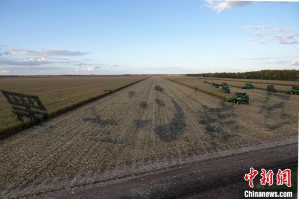 友谊农场“万亩大地号”上,农机进行作物收割作业,场面壮观。中新网记者 孙自法 摄