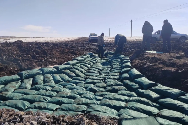 在黑龙江省克山县华安村,工人们正抓紧建设沟头跌水中的上游生态袋导水地下工程。农民日报·中国农网记者 颜旭 摄