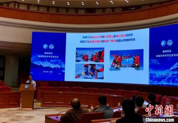 当日的珠峰科考学术交流会议上,珠峰科考人类活动分队长、北京大学教授朱彤院士和珠峰科考生态系统分队长、中科院青藏高原研究所副所长朴世龙院士,分别以“高原大气氧化性与高山生理适应”“气候变化与碳循环”为题做主旨报告,珠峰科考西风-季风协同作用及其影响分队长、中科院青藏高原所马耀明研究员,珠峰科考极高海拔冰芯钻取小组组长、中科院青藏高原所徐柏青研究员,珠峰科考浮空艇综合垂直观测小组组长、中科院青藏高原所高晶研究员,珠峰科考土地覆被变化小组组长、中科院地理科学与资源研究所张镱锂研究员,也围绕各自负责领域先后做专题报告。