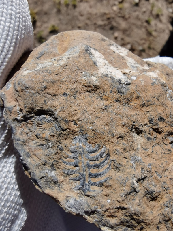 在扎营后的第二天一早,队员们就会带着干粮、分组出发了。因为缺氧、爬坡上坎不容易,即使只是几公里的路,也需要耗费几小时才能走到。来到裸露着的岩层之上,根据科学推测寻找化石层位,科考队员会在可能的层位拿着地质锤仔细敲打、找寻。大家对如何找到化石了然于胸。比如,砾岩里面找不到精美的化石,因为它们沉积很快,不利于化石保存;粉砂岩是粉末状,沉积得比较慢,因此保存化石更容易;碳酸盐岩找到化石的概率比较大……