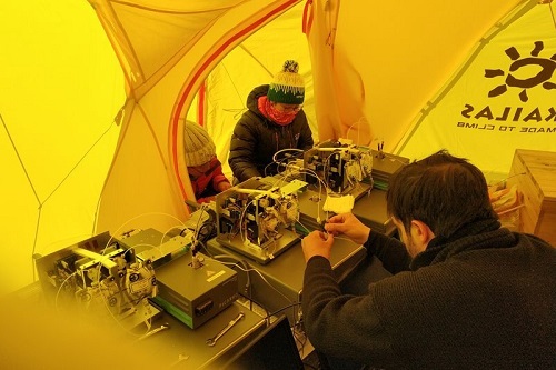 科研人员在珠峰大本营调试水汽稳定同位素观测仪器