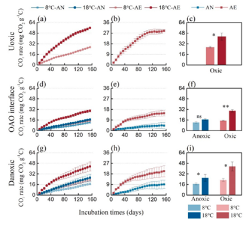 无码影片 成都生物研究所研究员陈槐团队通过不同层土壤采集及室内控制实验,研究了不同层土壤有机碳组成、微生物活性、CO2排放潜势以及对增温和外界新碳输入的响应,揭示了气候变化背景下不同层土壤CO2排放的调控过程(图1),提出了有氧厌氧过渡层土壤对增温相对不敏感,但对外界碳输入极为敏感。因此,稳定的过渡层有助于减缓泥炭沼泽土壤碳排放,而在此过程中首先需要减缓外界碳的输入,降低其对过渡层的激发作用,再次需要维持稳定的水文环境,保护过渡层对增温的不敏感性。