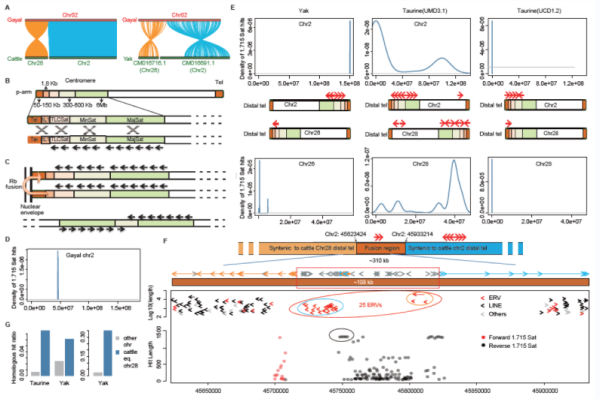 牛属物种中广泛存在着罗伯逊易位,其中Rob(2;28)(祖先2号染色体和28号染色体易位融合)在独龙牛中已固定下来。独龙牛是一种半野生半家养的珍稀牛种,栖息在高山陡坡环境中,具有十分优秀的攀爬能力,其肌纤维以细长著称,因与当地黄牛杂交频繁,种质资源受到了严重威胁。其独特的生活环境和频繁的杂交历史为研究核型变化和罗伯逊易位提供了理想的研究材料。