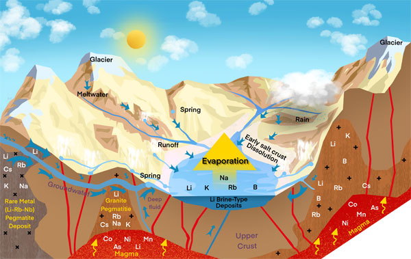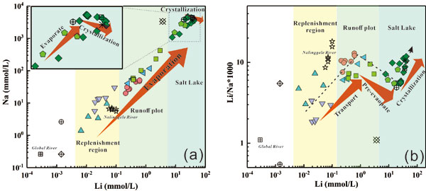 上述研究有助于进一步认识富锂盐湖中锂的来源及其富集过程,为深入理解卤水型锂矿床的成因机制提供了新证据,同时也为指导寻找隐伏的硬岩型锂矿床或潜在的卤水型锂矿床提供了新思路。