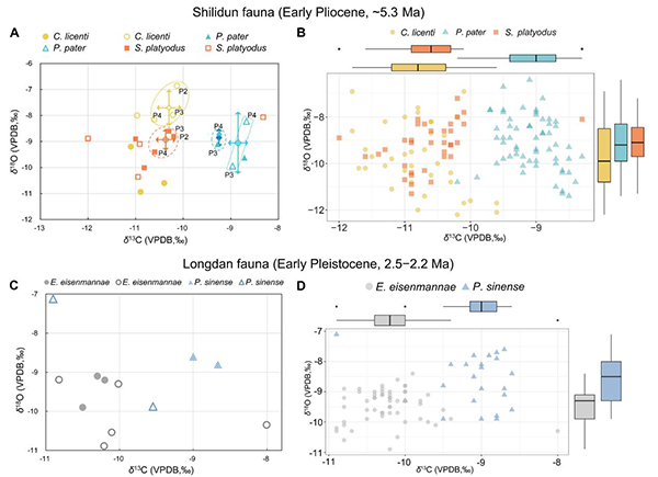 2月15日,无码影片 古脊椎动物与古人类研究所研究员邓涛团队在《古地理古气候古生态》(Palaeogeography, Palaeoclimatology, Palaeoecology)上,发表了关于甘肃临夏盆地马科动物古生态研究的最新进展。该研究着眼于上新世至更新世这一马科动物演化历史中的关键阶段,利用碳氧稳定同位素分析方法,重建临夏盆地十里墩(上新世早期,约530万年前)和龙担(更新世早期,250至220万年前)动物群(图1)中五种马的生态位。结合马科动物的生态形态学、古环境及古气候分析,该研究首次揭示了东亚地区马科动物的生态位差异及其在三趾马和真马演化史中的重要意义。