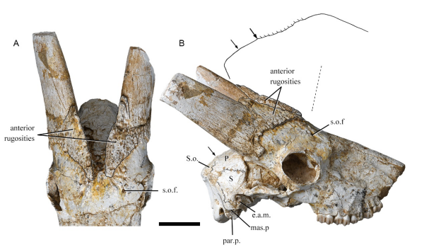 图1. 雄性的群中新羚牛(Miotragocerus gregarius)头骨