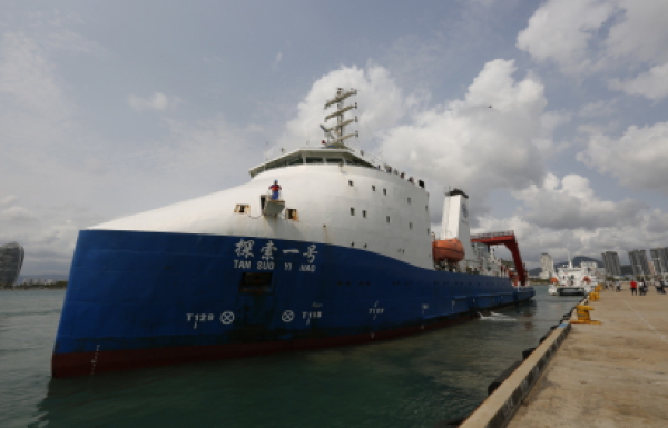4月2日下午,“探索一号”科考船完成2020年度首个科考航次(TS16航次),返回三亚救助局码头。
