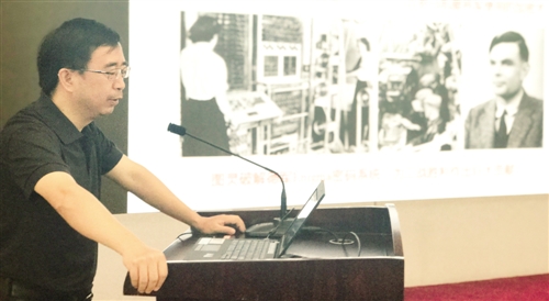 潘建伟院士介绍“墨子号”卫星已取得的科研成果。记者佘惠敏摄