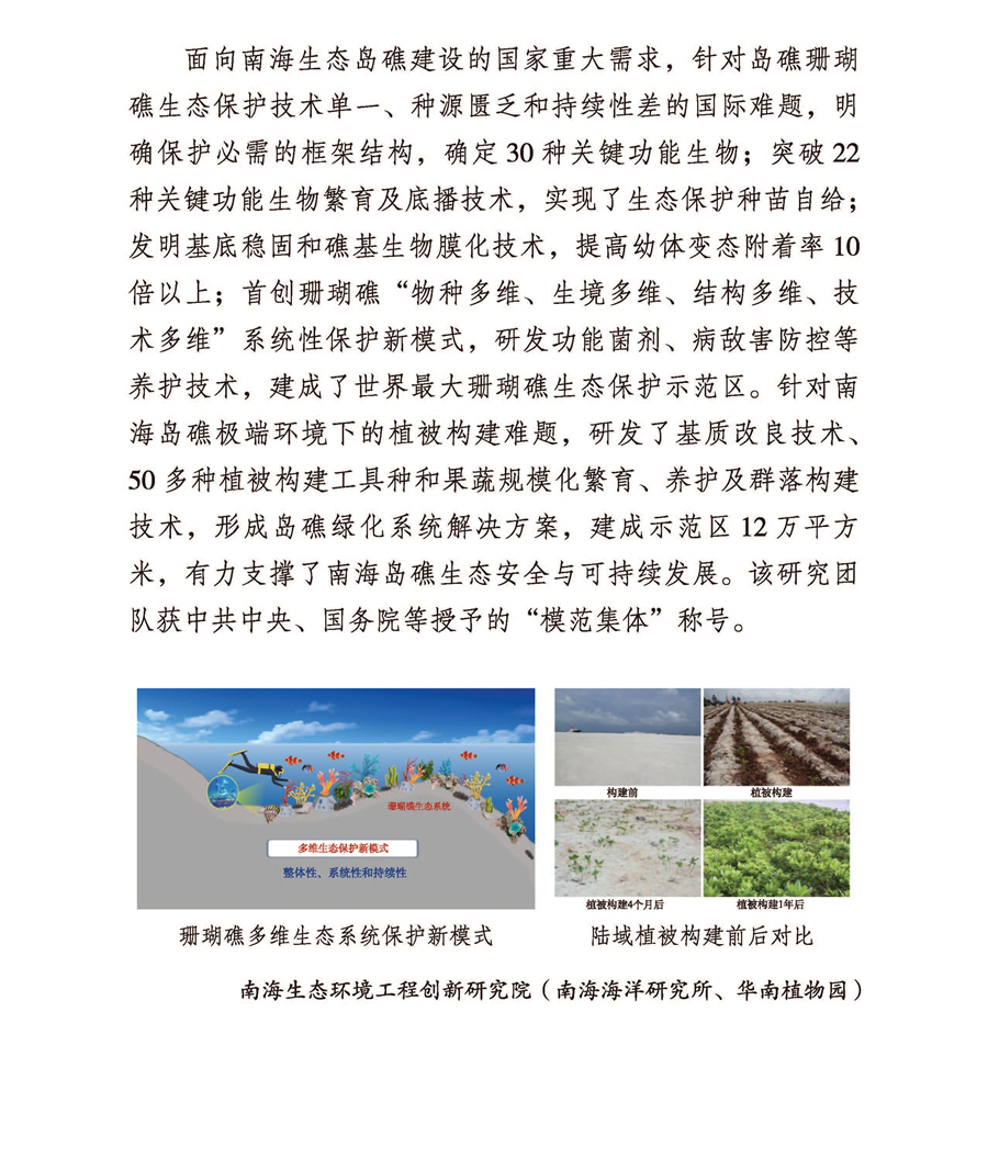 热带岛礁海洋生态系统性保护及绿化关键技术与应用