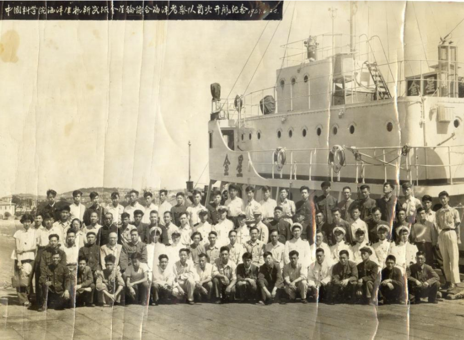 1957年6月,经改造的“金星”号出厂,作为新中国首艘远洋科学考察船正式进入海洋所海洋调查船序列。“金星”号首航海洋科学考察船队员合影。