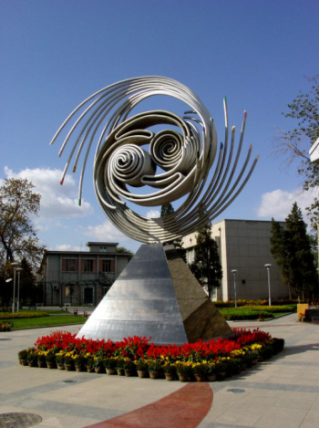 矗立在高能所院内的“无尽阴阳”雕塑。
