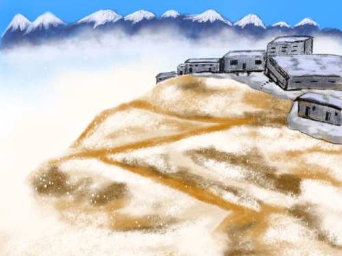 当年建在云南高山上的“落雪站”。(记者贺萌手绘)
