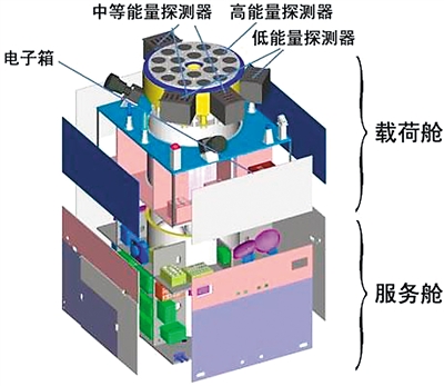从“慧眼”的实际载荷和探测能力来看,它被称作“硬X射线调制望远镜”多少有些名不副实了,因为它通过携带的几件“法宝”,不仅可以对高能的硬X射线和中能、低能的软X射线进行观测与成像,而且还可以监测空间环境。特别值得一提的是,“慧眼”项目首席科学家张双南创造性地对原本用于屏蔽干扰粒子的探测器稍加改造,使其成为目前世界上面积最大、灵敏度最高的伽马暴探测器,大大拓展了其探测范围和能力。