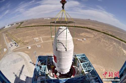 6月15日11时00分,中国在酒泉卫星发射中心采用长征四号乙运载火箭,成功发射首颗X射线空间天文卫星“慧眼”。图为吊装卫星瞬间。中新社发 航天科技集团五院供图