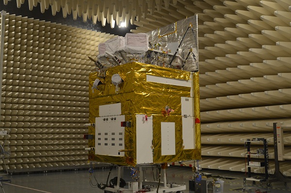 有效载荷(位于卫星顶部)参与整星电磁兼容性试验