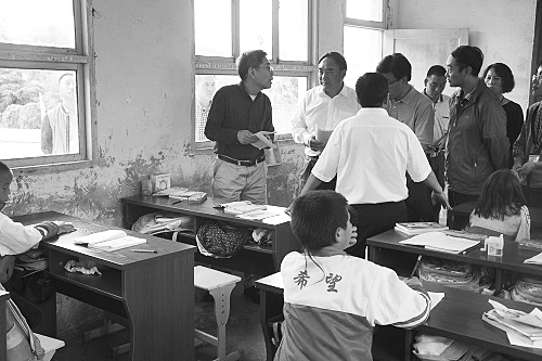 施尔畏(左一)在光炽希望小学了解教学情况