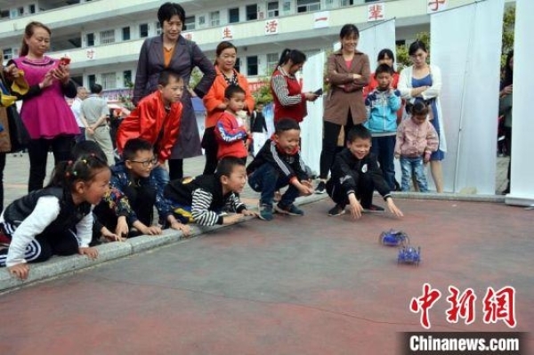 几百公里之外的金寨县燕子河中学,一场特别的科技活动展正在举行,中国科大百余名志愿者带来的机器人、意念头箍、航模等近30个科普项目,吸引了龙马村及周边约1500名中小学生和当地群众参观,这是中国科大以科技为“抓手”,深化教育扶贫的一个缩影。
