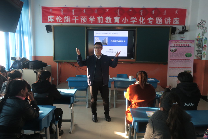 本次培训由心理所与库伦旗妇女联合会、教体局联合举办,王利刚以“启睿计划”为题,系统介绍了幼儿期间家庭教育的关键内容和方法,呼吁广大家长重视儿童的早期教育及发展环境建设,预防幼儿园教育小学化,力争通过科学育儿方法的普及打破贫困的代际传递。