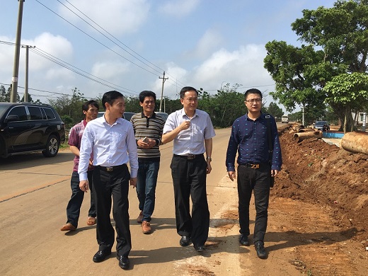 詹文欢一行调研了上园村生态文明村建设,查看村排污系统、村道硬底化及森林公园、休闲广场等基础项目建设,然后走访墩尾村小组、桐挖村小组和家仔村小组,探望慰问贫困户,深入实地考察贫困户危房改造和村民饮水安全等情况。