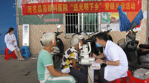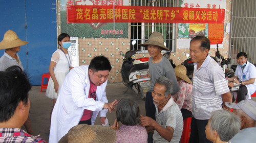 在义诊现场,扶贫驻村干部、村“第一书记”和村“两委”干部热情服务。群众积极向医生诉说自己的病痛,咨询眼科疾病预防和健康保健知识。医生们认真仔细地给群众检查眼睛,诊断病情,耐心交代药物的服用方法及注意事项,嘱咐他们按时用药,并详细告知免费送返茂名就医事宜。