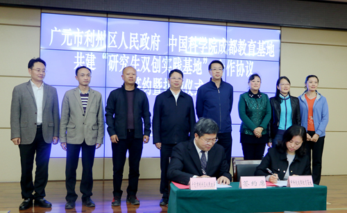利州区区委书记刘襄渝表示,利州区是成都分院“精准扶贫”定点帮扶地区,有着广泛的合作基础。近年来,在成都分院的帮助下,利州区多个乡镇成立了杂交构树扶贫示范基地、绿色稻麦扶贫示范基地、石斛示范基地,利用先进的科技生产知识,帮助农民脱贫攻坚。中科院是科技的国家队,利州区政府深切希望在教育方面也能加强合作,落实十九大加快实现创新型科技发展的要求,建设人才高地和创新高地,以研究生双创实践基地为平台,吸引学生成果转移转化,助力学生成长成才。