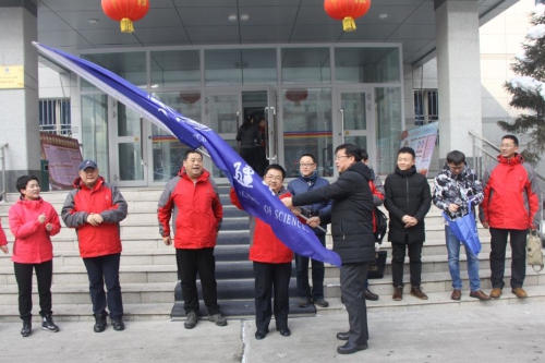 授旗仪式上,张小雷将新疆分院院旗交至中科院新疆天文台党委书记、深度贫困村第一书记孙正文手中,并勉励他不负重托,拼搏推进,带领工作队员们取得扶贫攻坚工作实实在在的成效。