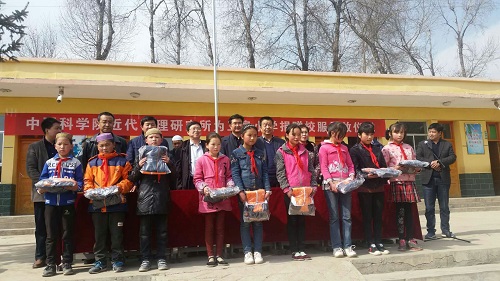 会后,近代物理所一行在张成军的陪同下,深入贫困户家中,进行实地考察,并详细了解了该村的教育培训、牛羊养殖等情况。随后,前往王泉村小学,为全村小学生赠送了校服,鼓励同学们好好学习,早日成为国家有用之才。