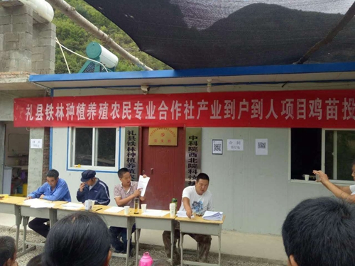西北生态环境资源研究院(筹)精准扶贫定点帮扶的礼县桥头乡丰元村,随着62户建档立卡贫困户首批3000只鸡苗发放全覆盖和合作生产协议的完成,由西北研究院帮扶办公室指导策划设计、地方政府产业扶贫专项资金支持、该村两个农民专业合作社牵头、建档立卡贫困户整体参与、驻村工作队督查协调的“丰元村生态养鸡产业扶贫”项目进入模型实证运行阶段。