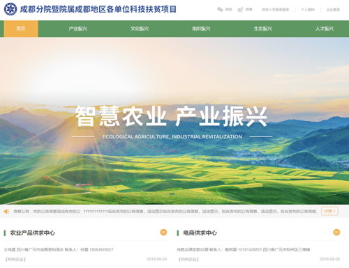 成都分院乡村振兴信息化综合应用平台在定点帮扶区域利州正式上线。该项目由成都分院暨院属成都地区各单位出资,中科院成都信息公司负责开发。
