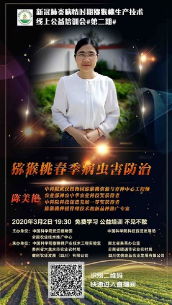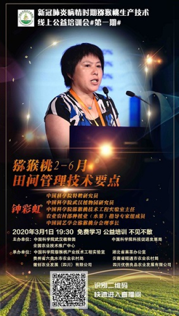 武汉植物园和中科院猕猴桃产业技术工程实验室在中科院科技促进发展局、全国农业技术推广中心支持下,联合湖北省果茶办公室、贵州省六盘水市农业农村局、云南省昭通市农业农村局等共同举办了两期“新冠肺炎时期猕猴桃生产技术线上公益培训”课。